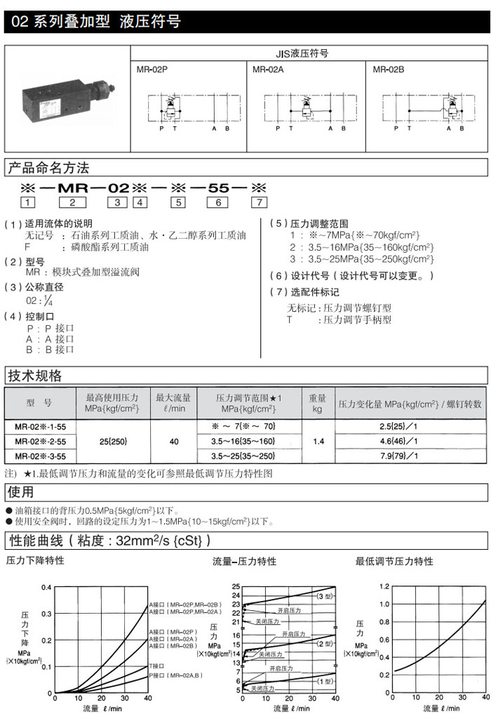 MR-02P,MR-02A,MR-02B,MR-02P-1-55,MR-02P-2-55,MR-02P-3-55,DAIKIN疊加型溢流閥