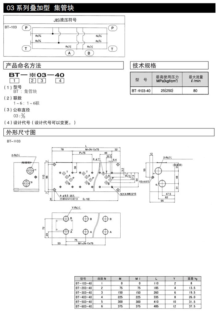 詳細信息 BT-103-10,BT-203-10,BT-303-10,BT-403-10,BT-503-10,BT-603-10,DAIKIN疊加型集管塊