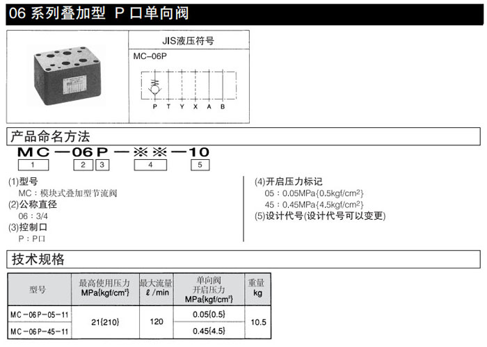 MC-06P-05-11,MC-06P-45-11,DAIKIN疊加型單向閥