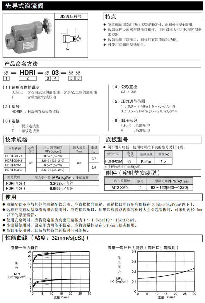 HDRI-G03-1,HDRI-G03-3,HDRI-T03-1,HDRI-T03-3,DAIKIN先導(dǎo)式溢流閥