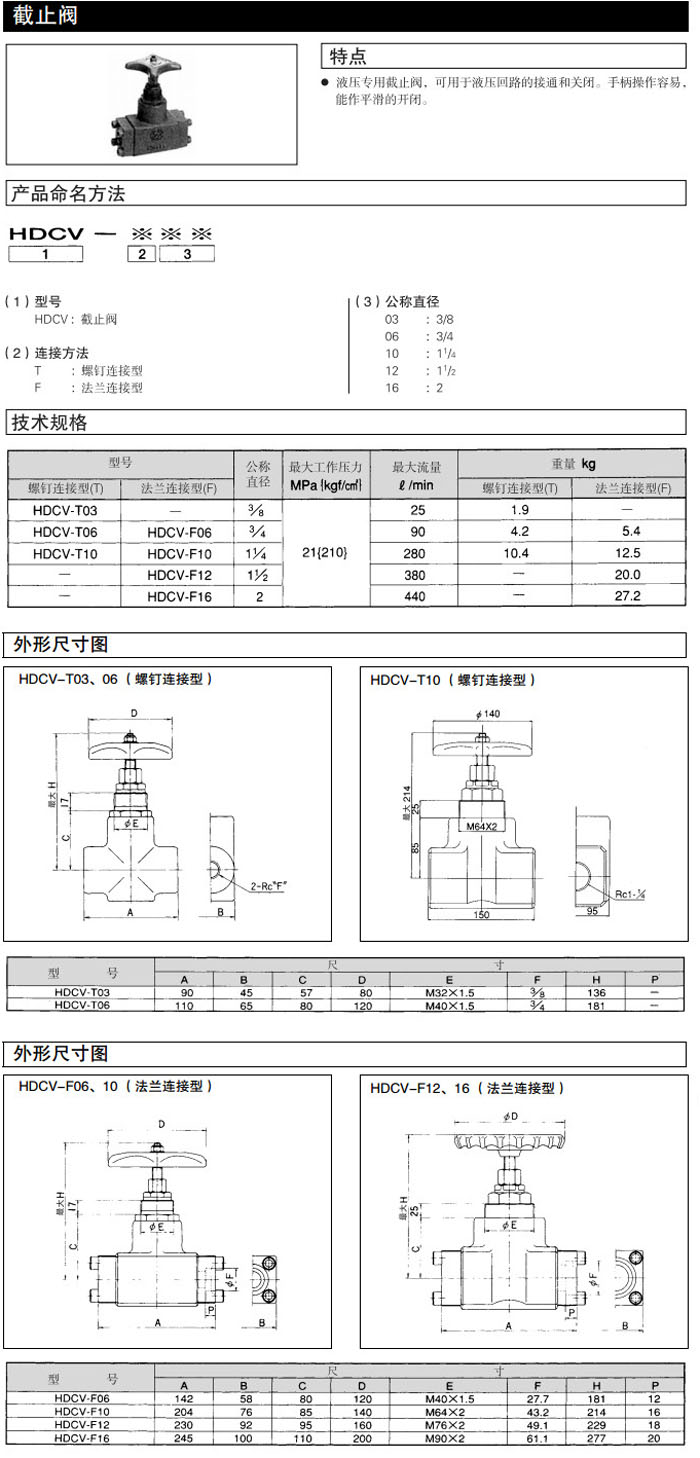 HDCV-T03,HDCV-T06,HDCV-T10,HDCV-F06,HDCV-F10,HDCV-F12,HDCV-F16,DAIKIN截止閥