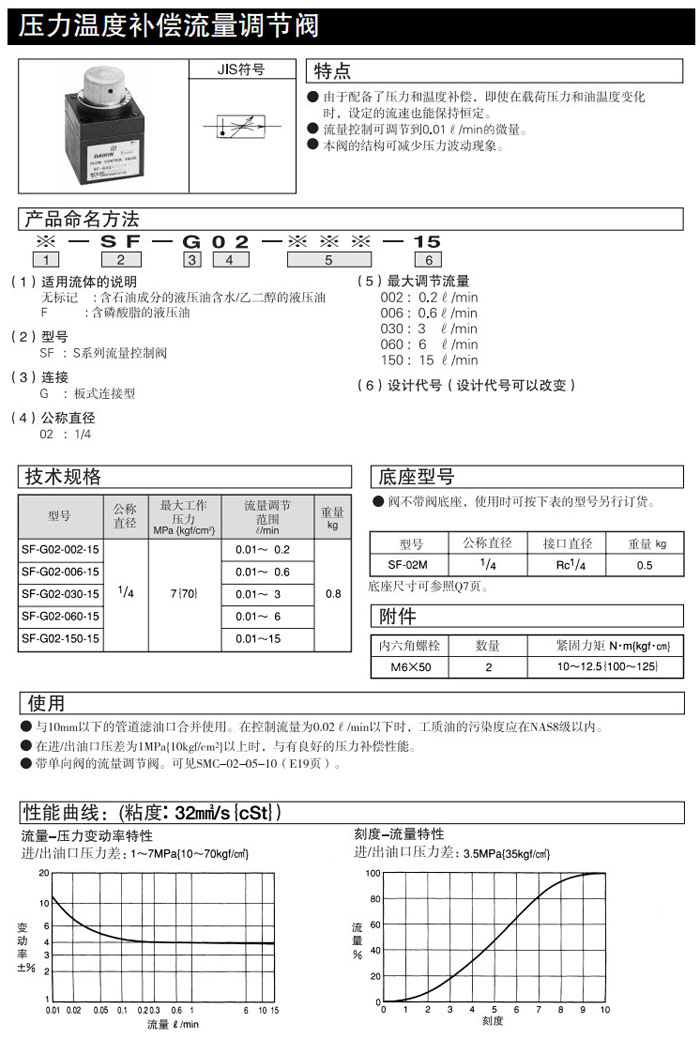 SF-G02-002-15,SF-G02-006-15,SF-G02-030-15,SF-G02-060-15,SF-G02-150-15,DAIKIN壓力溫度補償流量調(diào)節(jié)閥