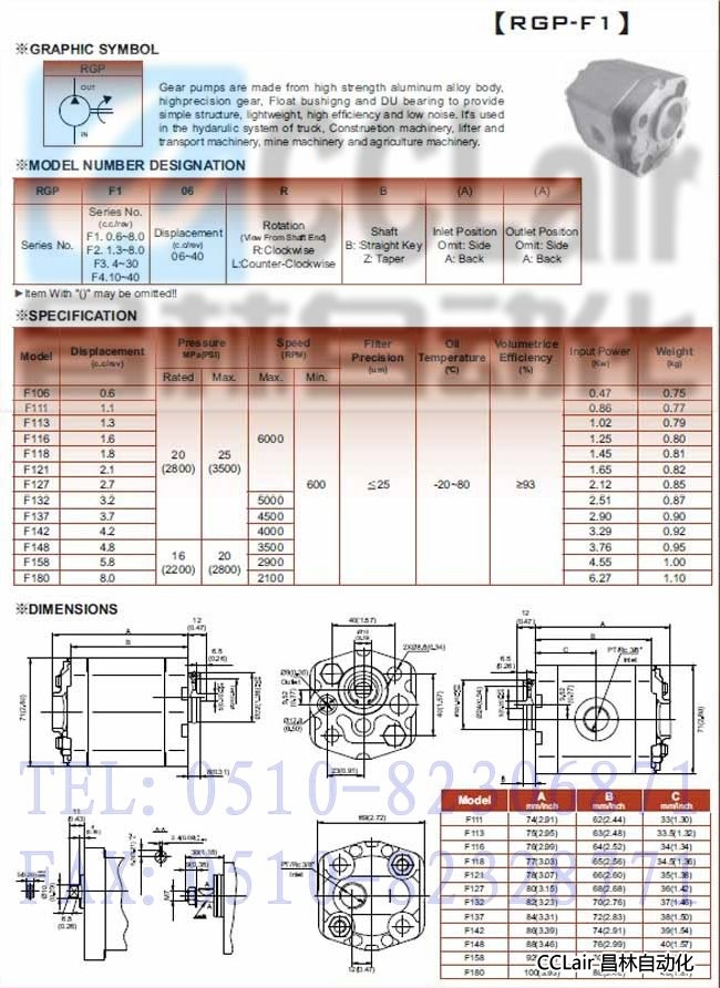 RGP-F106,RGP-F111,RGP-F113,RGP-F116,RGP-F118,齒輪泵浦
