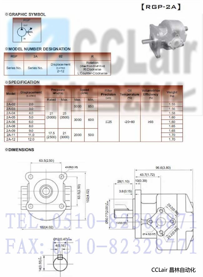詳細信息 RGP-2A-02,RGP-2A-03,RGP-2A-04,RGP-2A-05,RGP-2A-06,齒輪泵浦