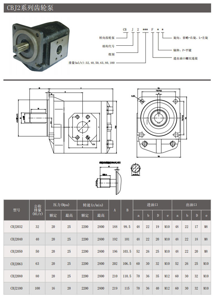 CBJ2032,CBJ2040,CBJ2050,CBJ2063,CBJ2080,CBJ2100,CBJ2063FPL,CBJ2032FP,齒輪泵