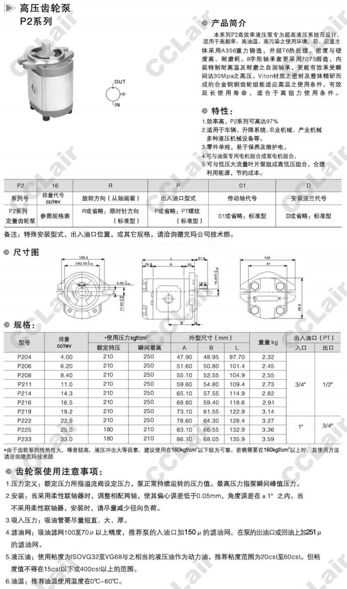 P204,P206,P208,P211,P214,P216,P219,P222,P225,P233,P204RP01D,P206RP01D,高壓齒輪泵