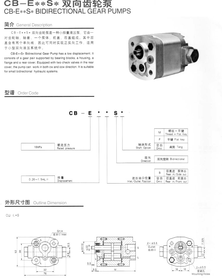 CB-E0.26,CB-E0.32,CB-E0.38,CB-E0.50,CB-E0.60,CB-E0.75,CB-E0.88,CB-E1.00,CB-E1.25,CB-E1.50,雙向齒輪泵