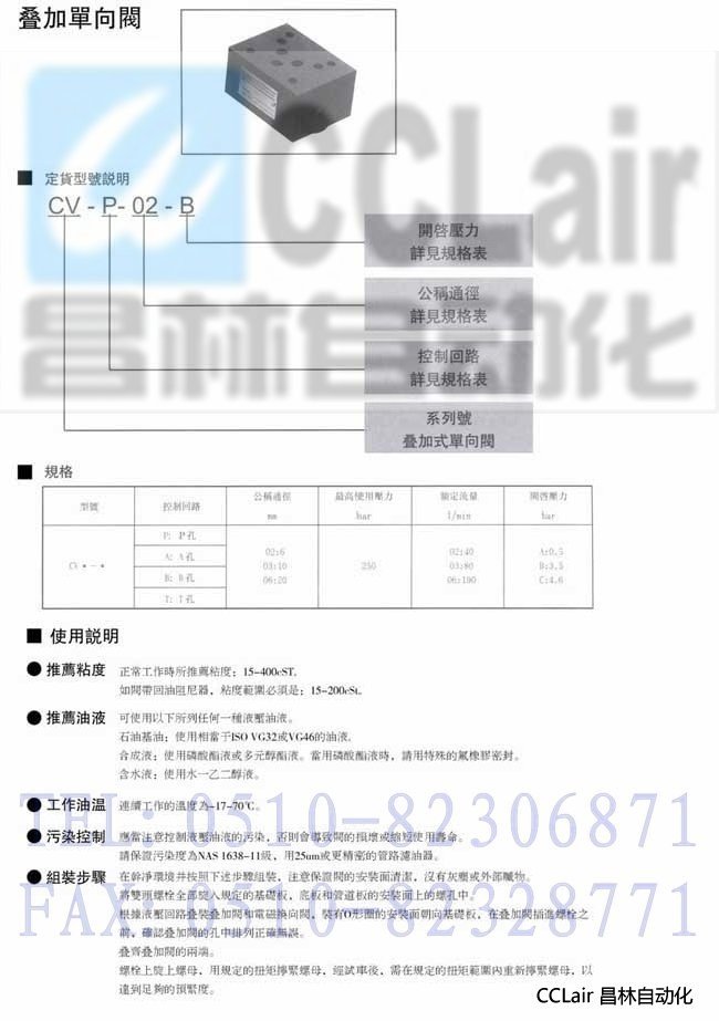 CVA-06,CVB-02,CVB-03,CVB-06,CVT-02,CVT-03,疊加式單向閥 ,