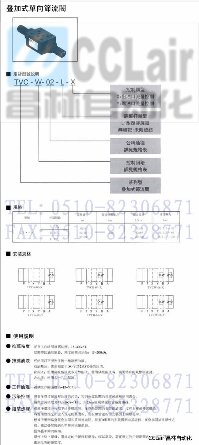 詳細信息 TVCB-06,TVCW-02,TVCW-03,TVCW-06,疊加式單向節(jié)流閥