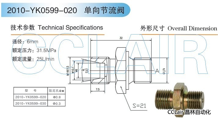 2010-YK0599-020,2010-YK0599-030,單向節(jié)流閥