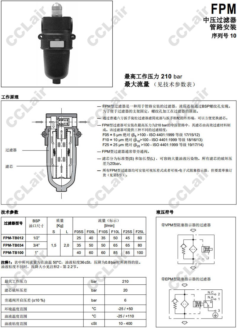 FPM-TB012-F05S/10N-B,FPM-TB034-F25S/10N-B,FPM-TB012-F25S/10V-B,FPM-TB100-F05S/10N-0,FPM-TB012-F25L/10N-0,中壓濾油器
