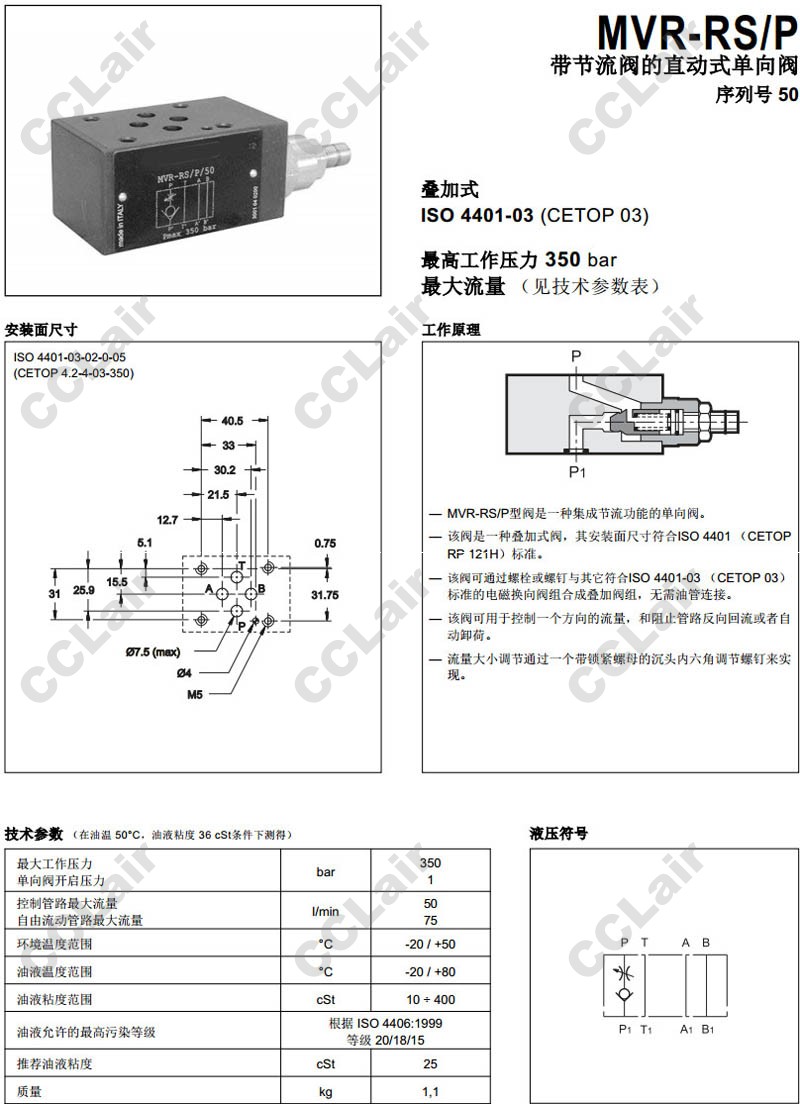 MVR-RS/P/50,MVR-RS/P/50/V,疊加式單向閥
