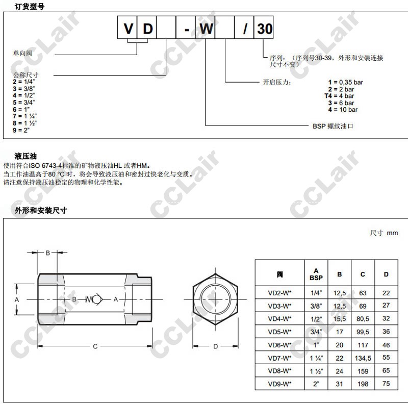 VD2-W1/30,VD3-W2/30,VD4-W3/30,VD5-W4/30,VD6-WT4/30,VD5-W1/30,VD7-W3/30,VD8-W4/30,VD9-WT4/30,VD9-W2/30,單向閥