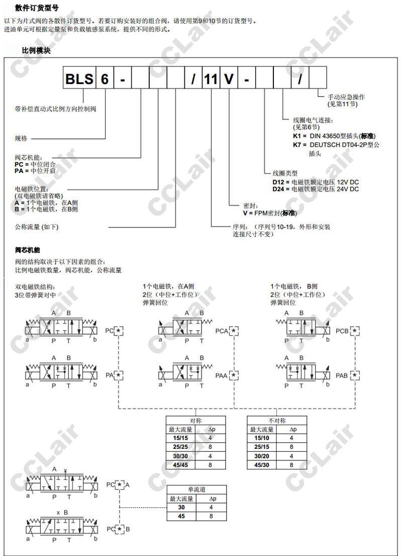 BLS6-PC15/15/11V-D12K7/CM,BLS6-PAB30/20/11V-D12K7/CM,BLS6-PAA45/45/11V-D12K7/CM,BLS6-PCB45/45/11V-D24K7/CM,比例方向控制閥