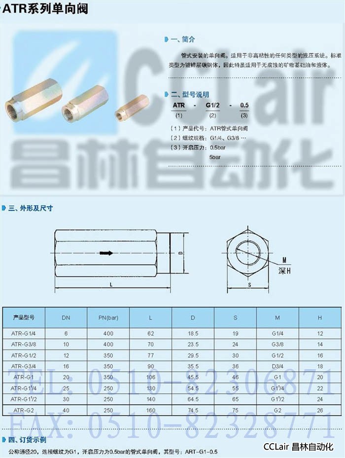 詳細(xì)信息 ATR-G1/4,ATR-G3/8,ATR-G1/2,ATR-G3/4,ATR-G1,ATR-G2,單向閥
