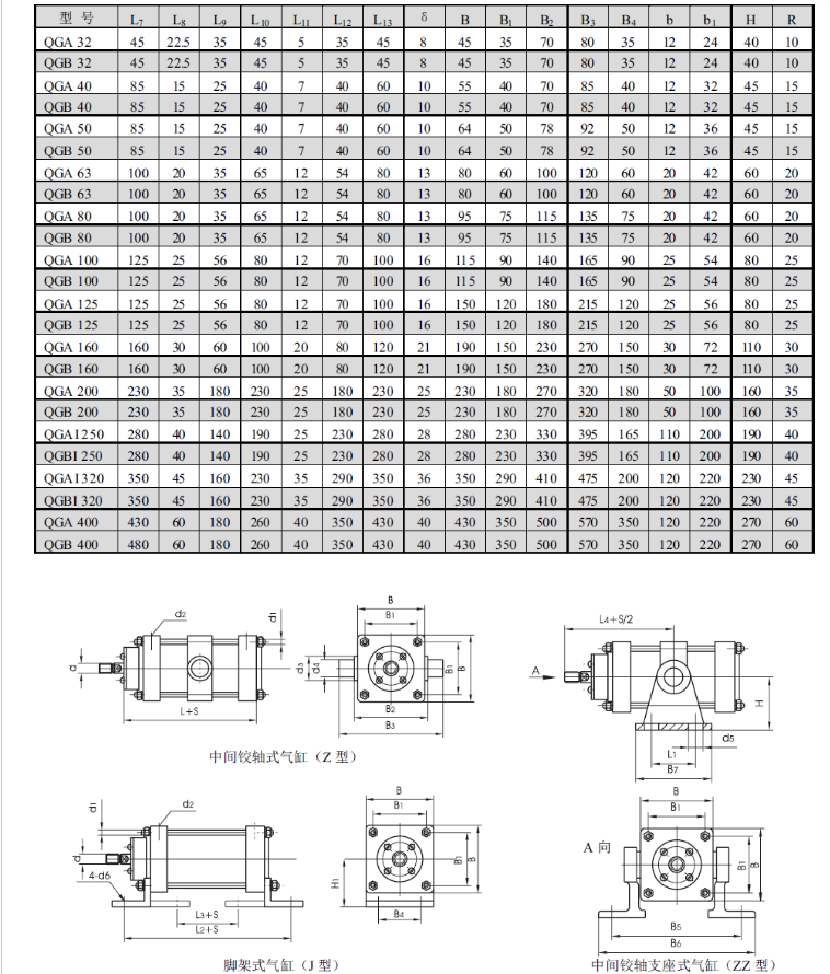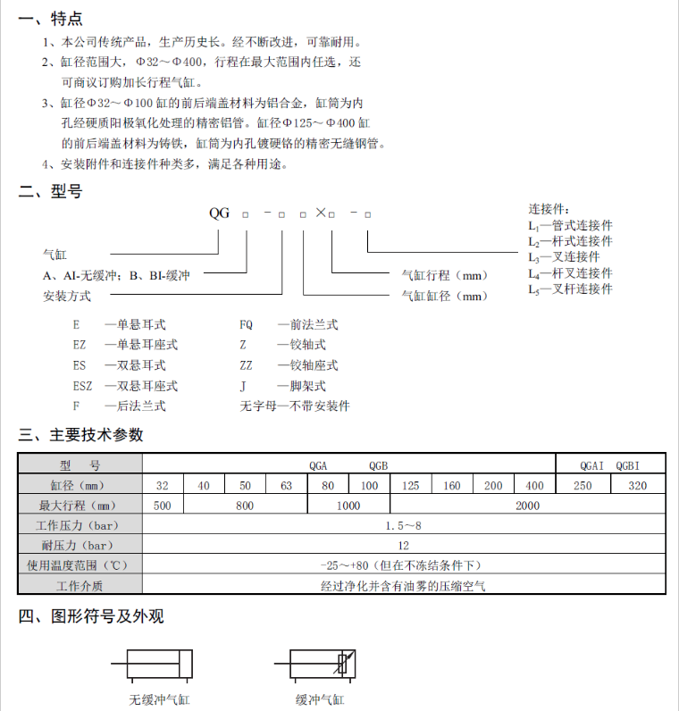 » QGA320x1600,QGA320x1700,QGA320x1800,QGA320x1900,QGA320x2000氣缸