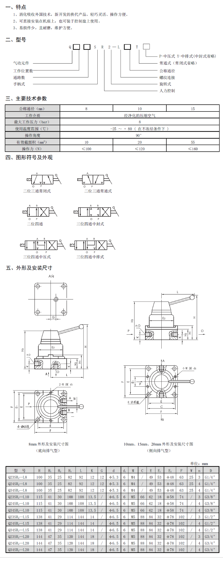 水平旋轉(zhuǎn)手柄式換向閥: QSR2系列