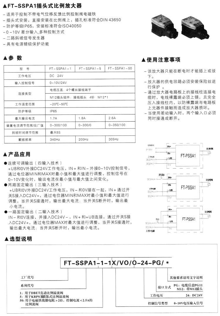 產(chǎn)品: 瀏覽次數(shù):707FT-SSPA1-1,FT-SSPA1-5,FT-SSPA1-50,插頭式比例放大器
