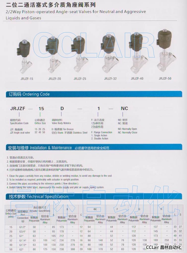 JRJZF-15,JRJZF-20,JRJZF-25,二位二通活塞式多介質角座閥