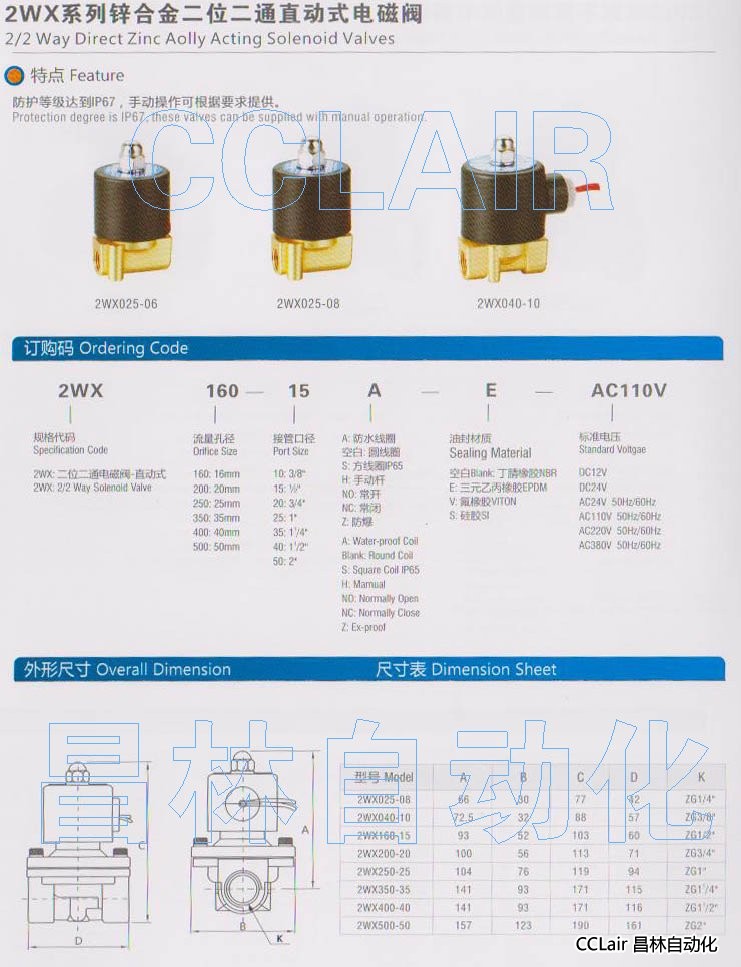 詳細(xì)信息 2WX025-18,2WX040-10,2WX160-15,2WX200-20,鋅合金二位二通直通式電磁閥