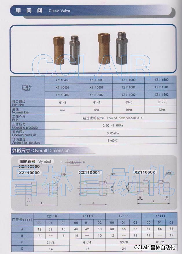 XZ110400,XZ110401,XZ110402,XZ110600,單向閥