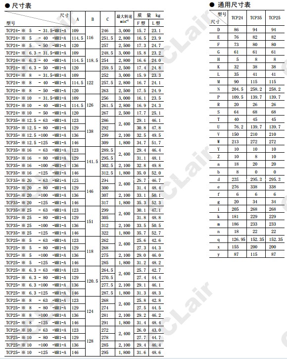 TCP34-L25-31.5-MR1,TCP34-L25-40-MR1,TCP34-L25-50-MR1,