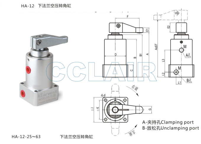 HA-12-25,HA-12-32,HA-12-40,HA-12-50,HA-12-63,下法蘭空壓轉(zhuǎn)角缸