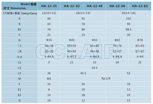 詳細(xì)信息 HA-12-25,HA-12-32,HA-12-40,HA-12-50,HA-12-63,下法蘭空壓轉(zhuǎn)角缸,無錫昌林