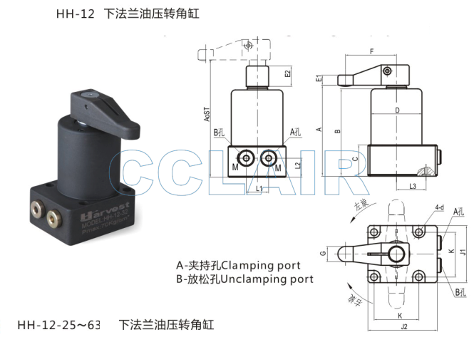 HH-12-25,HH-12-32,HH-12-40,HH-12-50,HH-12-63,下法蘭油壓轉(zhuǎn)角缸