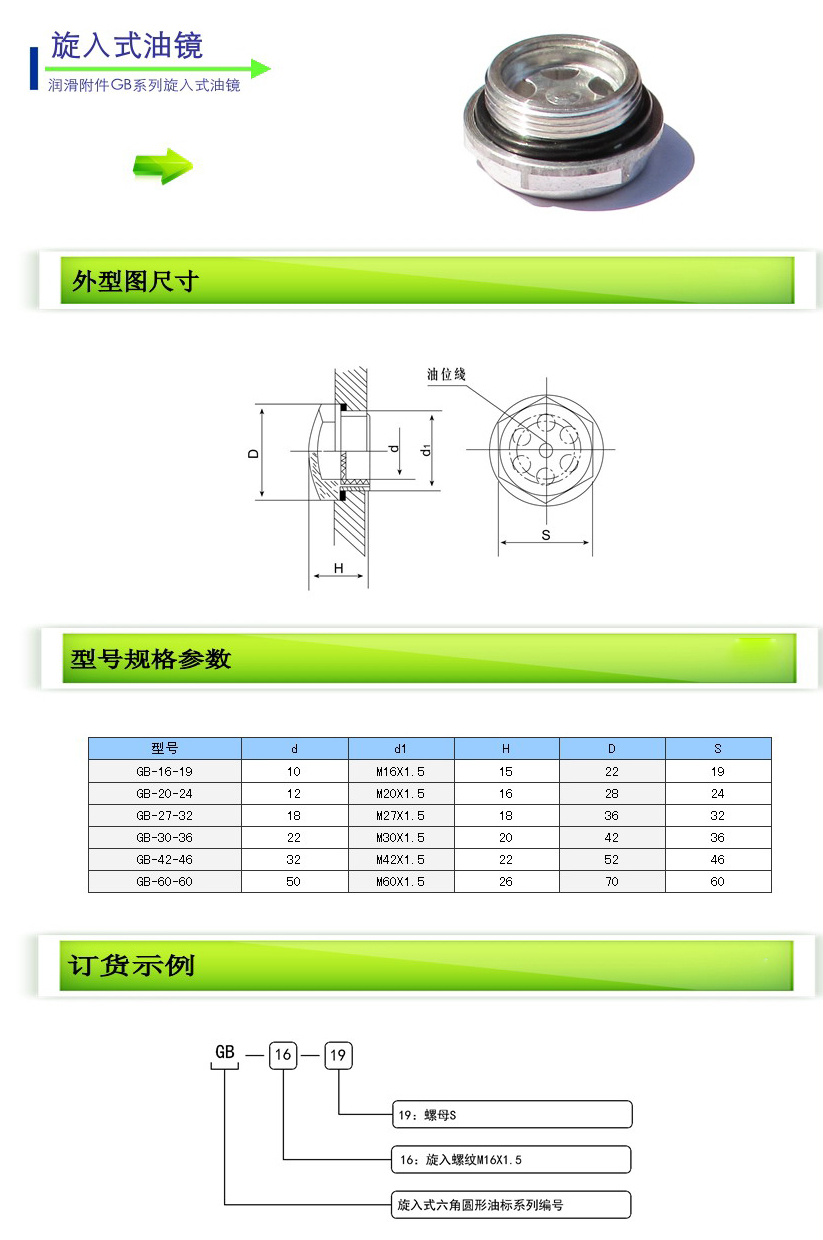 詳細(xì)信息 GB-16-19,GB-20-24,GB-27-32,GB-30-36,GB-42-46,GB-60-60,旋入式油鏡