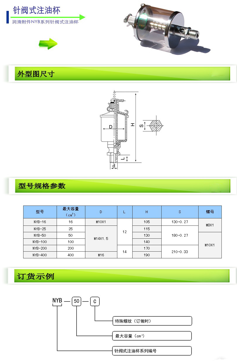 詳細信息 NYB-16,NYB-25,NYB-50,NYB-100,NYB-200,NYB-400,針閥式注油杯