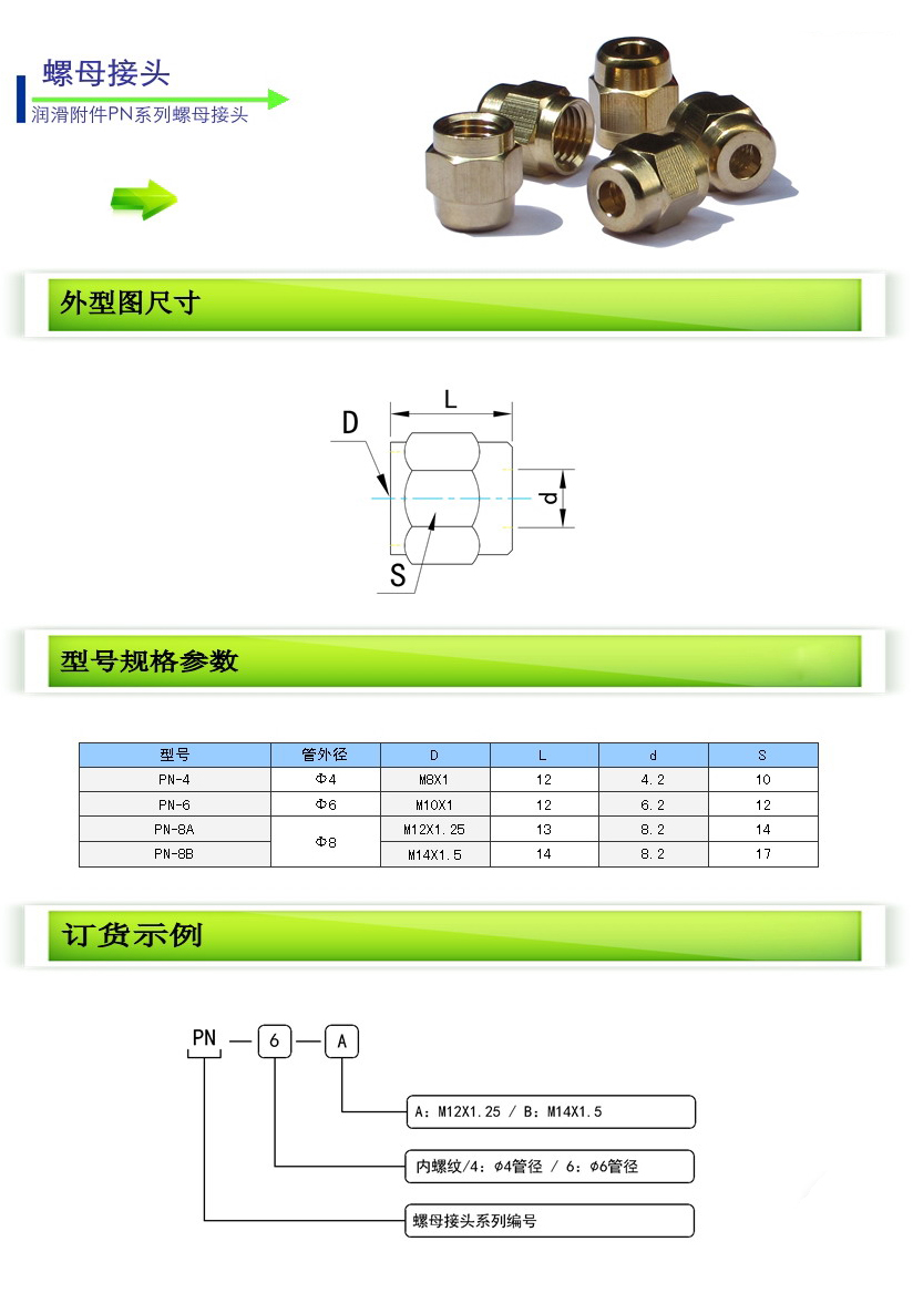 詳細(xì)信息 PN-4,PN-6,PN-8A,PN-8B,螺母接頭