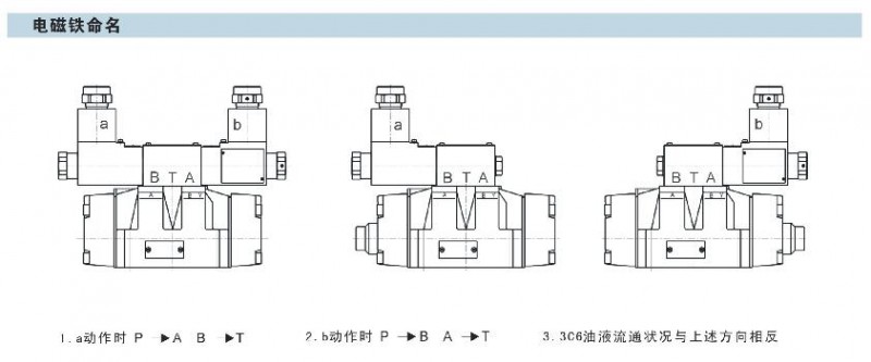二、技術參數(shù):規(guī)格 06 10 最高工作壓力 (MPa) 31.5 最大流量 (L/min) 220 430 工作介質(zhì) 礦物質(zhì)液壓油;磷酸脂 介質(zhì)油溫范圍 (℃) -20~70 介質(zhì)粘度范圍 (mm2/s) 2.8~380 開啟壓力 (MPa) a:0.05 b:0.4 工作電壓 (V) 直流 24 *交流 127, 220 防護等級 IP55