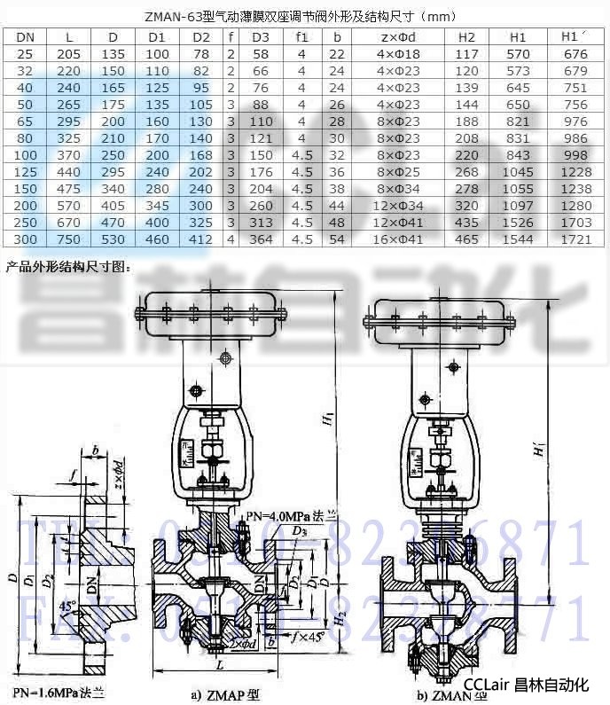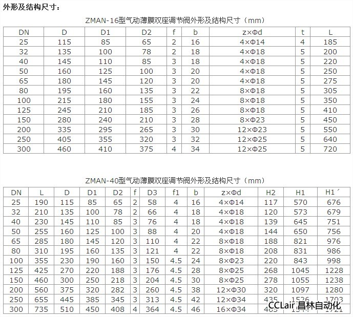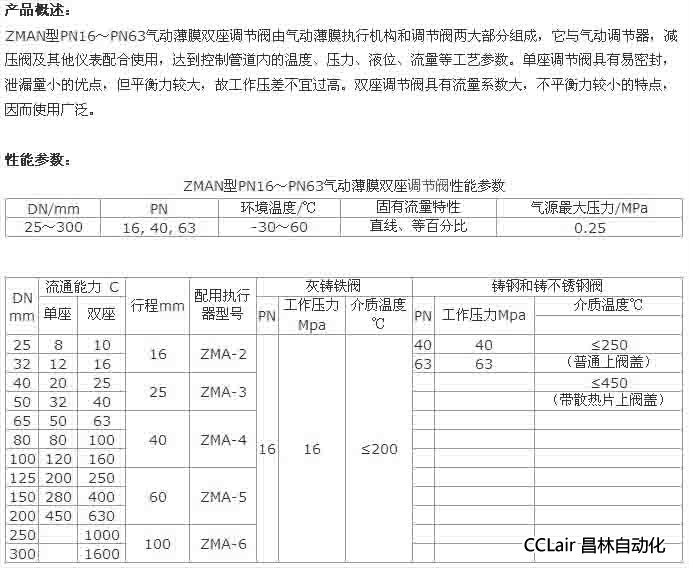詳細信息 ZMAN-16,ZMAN-40,ZMAN-64,氣動薄膜雙座調(diào)節(jié)閥