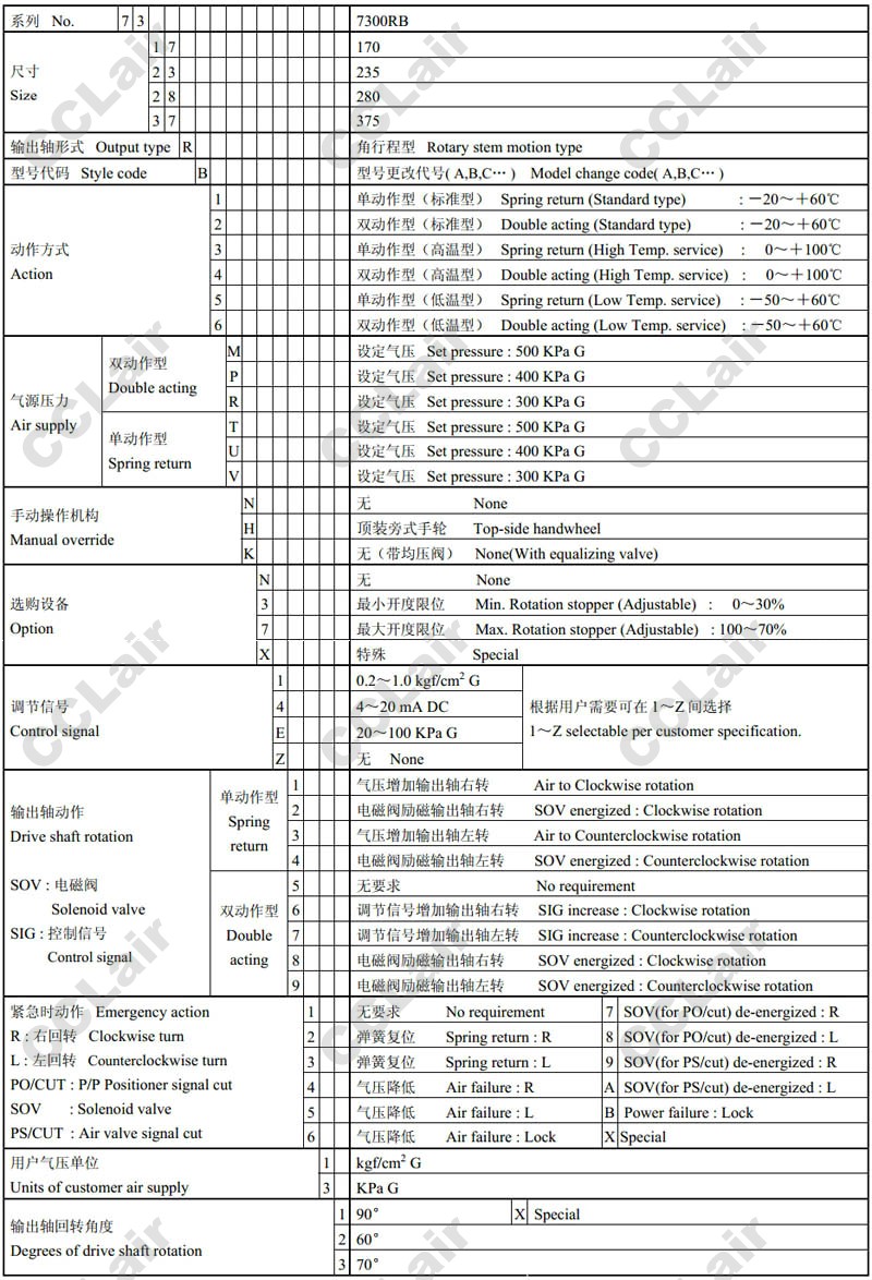 詳細信息 7317RB,7323RB,7328RB,7337RB,氣動角行程式執(zhí)行機構(gòu)