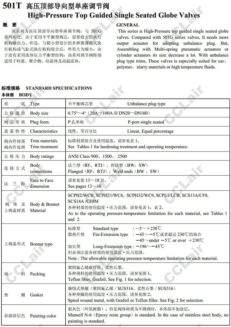 501T-5200LA,501T-6300LA,高壓頂部導(dǎo)向型單座調(diào)節(jié)閥