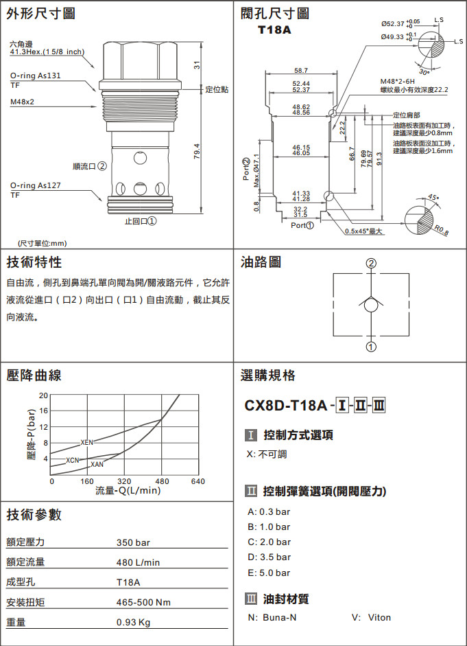 CX8D-T18A-XAN,CX8D-T18A-XBN,CX8D-T18A-XDV,CX8D-T18A-XEV,CX8D-T18A-XCN,CX8D-T18A-XDN,CX8D-T18A-XEN,CX8D-T18A-XAV,CX8D-T18A-XBV,CX8D-T18A-XCV,單向閥(口2通口1自由流)