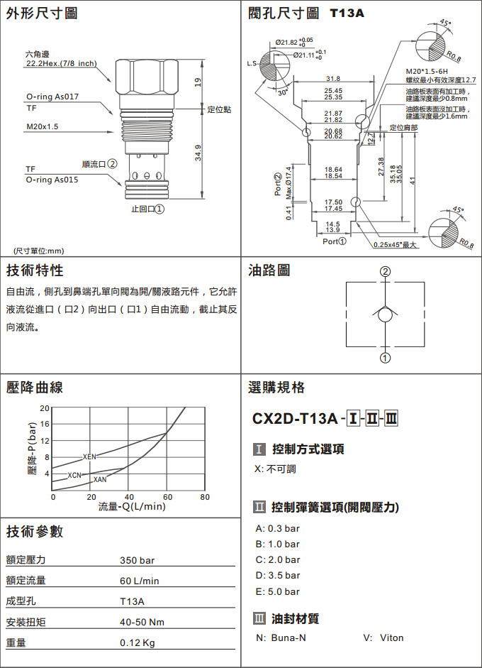 CX2D-T13A-XAN,CX2D-T13A-XBN,CX2D-T13A-XCV,CX2D-T13A-XDV,CX2D-T13A-XCN,CX2D-T13A-XDN,CX2D-T13A-XEN,CX2D-T13A-XAV, CX2D-T13A-XBV,CX2D-T13A-XEV,單向閥(口2通口1自由流)