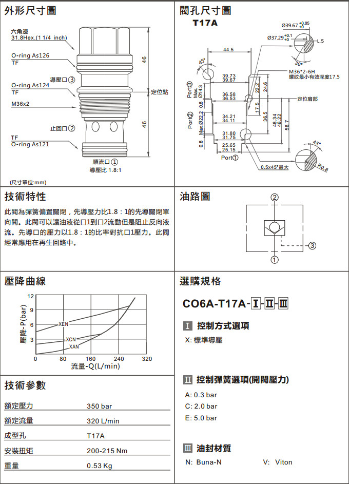 CO6A-T17A-XAN,CO6A-T17A-XCN,CO6A-T17A-XEN,CO6A-T17A-XAV,CO6A-T17A-XCV,CO6A-T17A-XEV,導壓關(guān)單向閥
