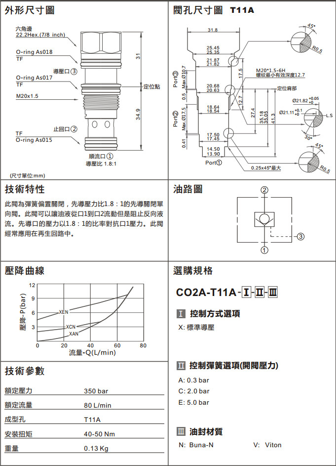 CO2A-T11A-XAN,CO2A-T11A-XCN,CO2A-T11A-XEN,CO2A-T11A-XAV,CO2A-T11A-XCV,CO2A-T11A-XEV,導(dǎo)壓關(guān)單向閥