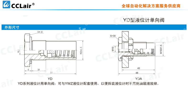 詳細(xì)信息 YD22*1.5,YD-M22×1.5,液位單向閥