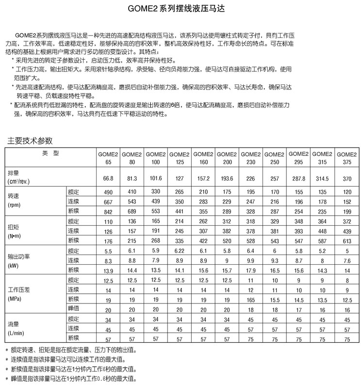 GOME2-65,GOME2-80,GOME2-100,GOME2-125,GOME2-160,GOME2-200,GOME2-315,GOME2-375,擺線液壓馬達