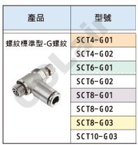 詳細(xì)信息 SCT4-G01,SCT4-G02,SCT6-G01,SCT6-G02,SCT8-G01,SCT8-G02,SCT8-G03,SCT10-G03,國(guó)鷹KUOIN螺紋接頭