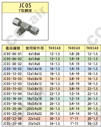 JC05-06,JC05-08,JC05-10,JC05-12,JC05-15,JC05-18,JC05-20,JC05-22,JC05-25,國鷹KUOIN鋼管接頭 |