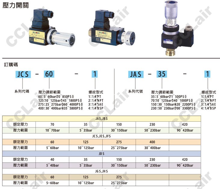 JCS-60,JCS-125,JCS-275,JCS-400,JAS-35,JAS-70,JAS-150,JAS-230,JCS-60-4,國(guó)鷹KUOIN壓力開關(guān)