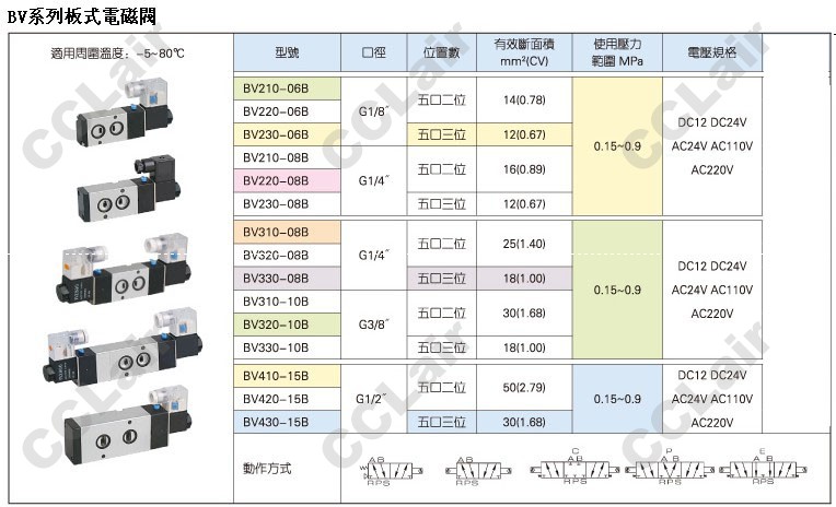 BV210,BV220,BV230,BV310,BV320,BV330,BV410,BV420,BV430,BV430-15B,國鷹KUOIN板式電磁閥