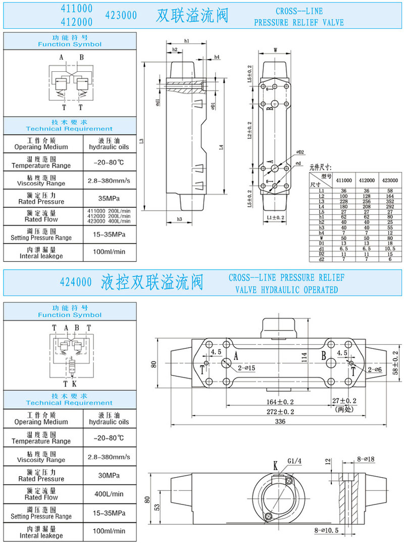 411000,412000,423000,424000,雙聯(lián)溢流閥