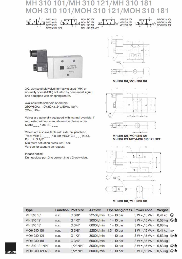MH310101,MH310121,MH310181,MOH310101,MOH310121,MOH310181,MH310121NPT,MOH310121NPT,Hafner電磁閥