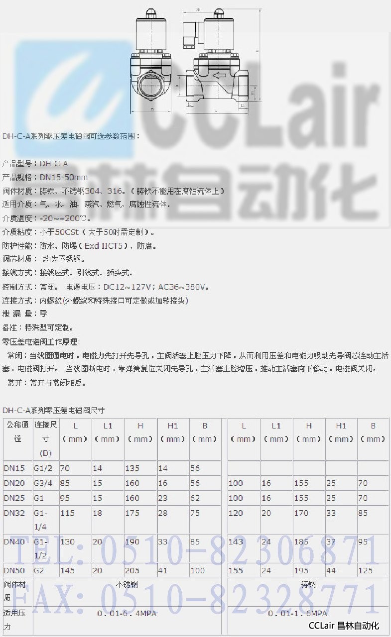 詳細(xì)信息 DH-C-A15,DH-C-A20,DH-C-A25,DH-C-A32,DH-C-A40,DH-C-A50,零壓差電磁閥