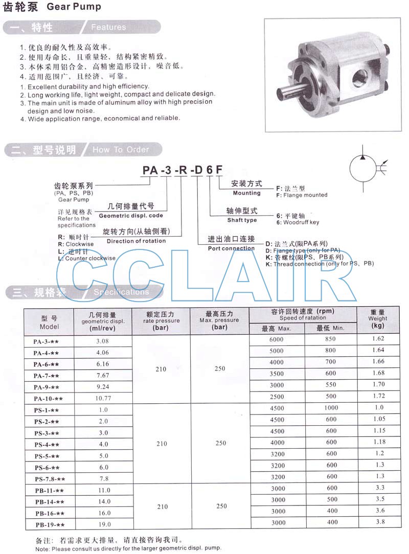 PS-4,PS-5,PS-7.8,PB-11,PB-14,PB-16,PB-19,PA-3-R-D6F,PA-4-R-D6F,PA-6-R-D6F,齒輪泵